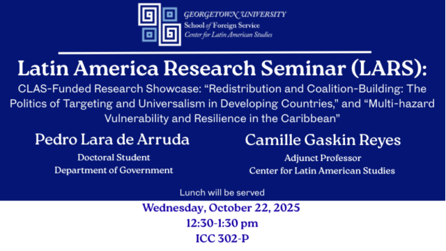This LAC Moments will feature a comparative discussion of courts and presidents in Brazil and the United States. Discussants include: Luciano da Ros, assistant professor in the department of sociology and political science at the Universidade Federal de Santa Catarina; Jon Ladd, associate professor of government and public policy at Georgetown University; and Elcior Santana, adjunct professor of Latin American studies at Georgetown University.