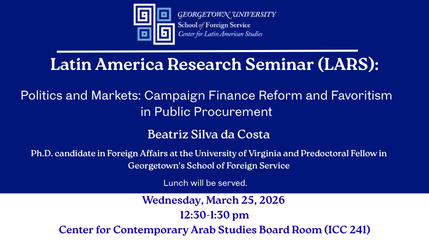 University of Virginia doctoral candidate and SFS predoctoral fellow Beatriz Silva da Costa will present her research on “Politics and Markets: Campaign Finance Reform,…